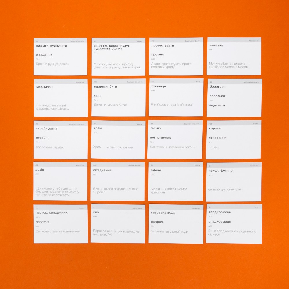 Купила себе А2, Б1, Б2 и карточки для путешествий на украинском языке. Это самые замечательные карточки, с которыми я наконец то начала учить слова. Набор для путешествий есть только на украинском, не всегда понятно, что за слова, перевожу на русский) Очень надеюсь, что появятся так же в русском варианте. Еще очень хочется карточки по турецкому языку. Спасибо Вам большое, желаю Вам процветания и дальнейшего развития!