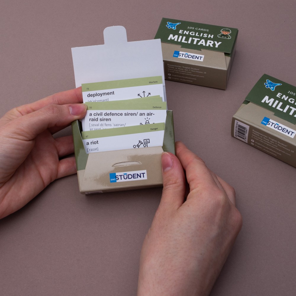 Карточки «Military English» — это английский для военных. Набор с военной лексикой подходит для курсантов, солдатов, офицеров и всех других, причастных к армейскому делу.