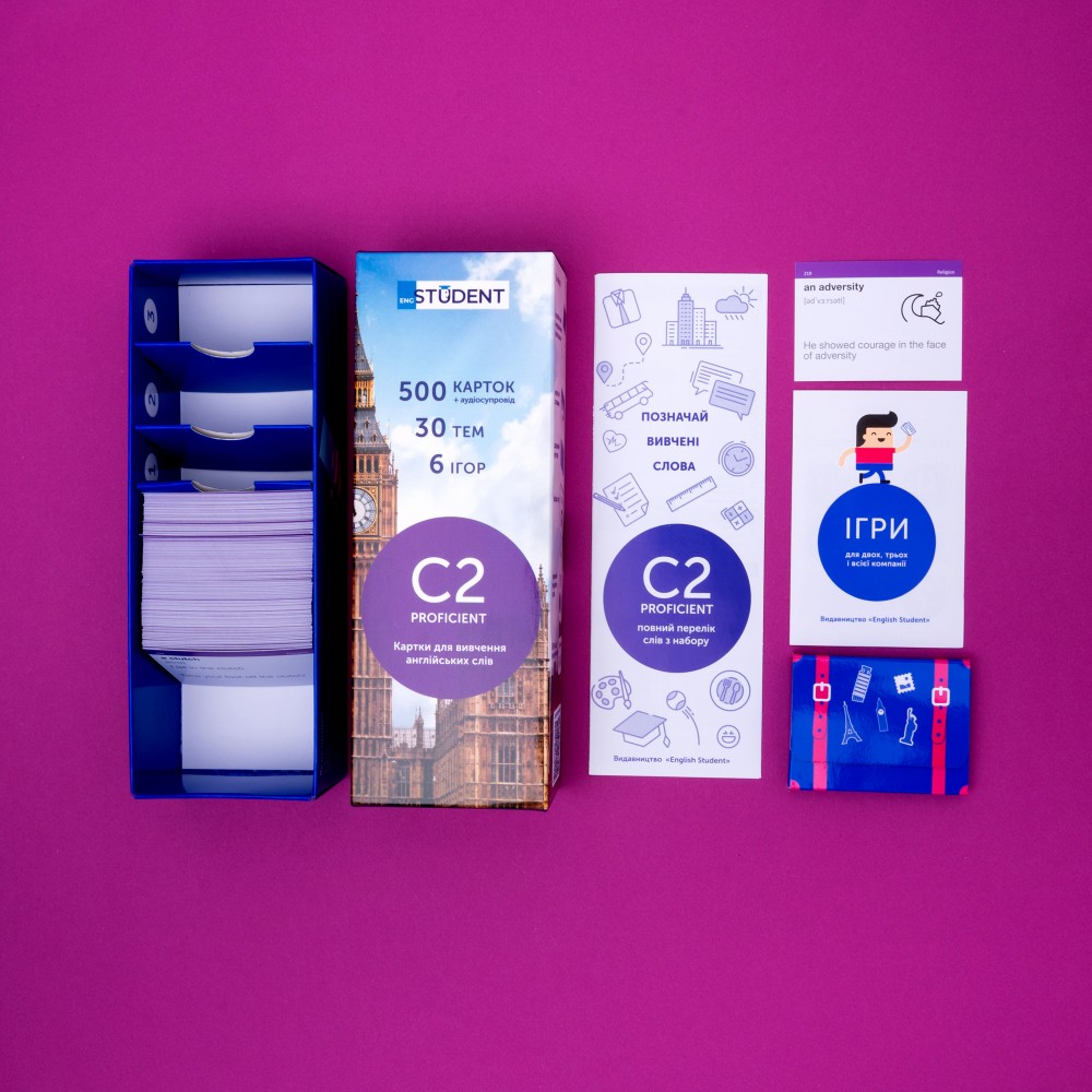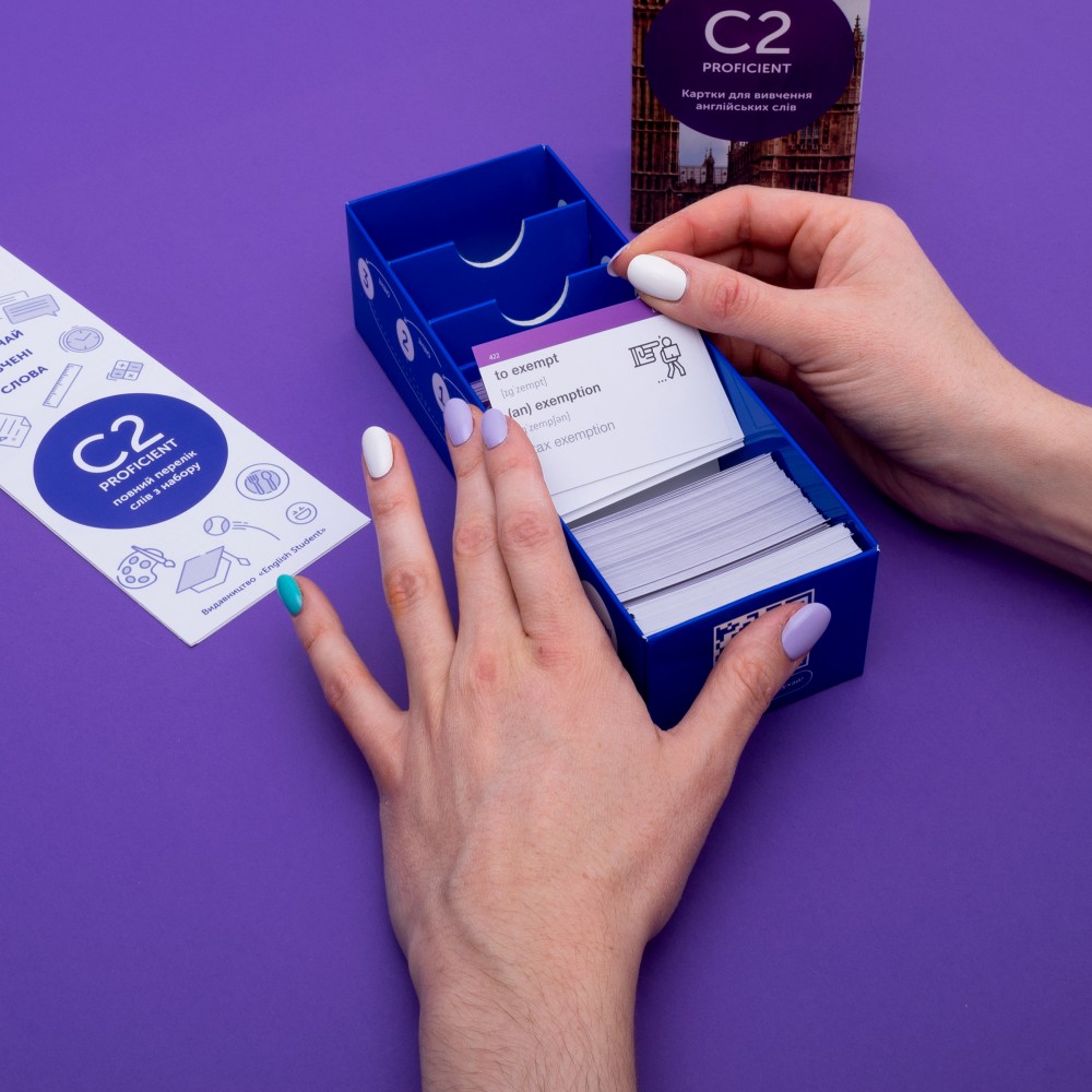Набор «Недоволен английским» — карточки английских слов для тех, кто мечтает, чтобы его английский был идеален. А также тем, кто хочет разговаривать, как native speaker. После изучения этого набора ты сможешь передавать самые тонкие оттенки значений, понимать юмор и фразы с подтекстами, которые употребляют носители языка. Набор для уровней С1 и С2 — это 1711 английских слов и 1134 примера.