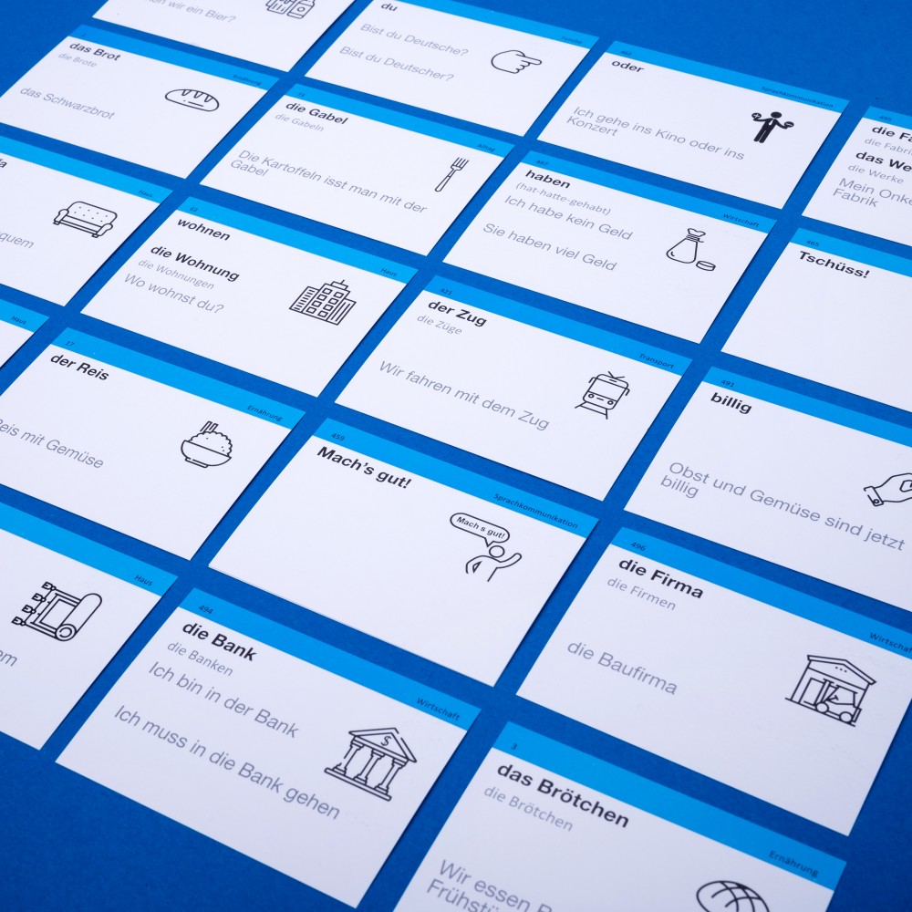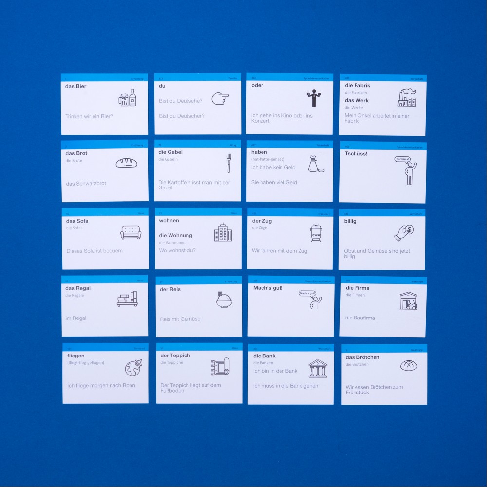 Німецька А1, початковий — набір карток для тих, хто розпочинає вивчати німецьку. Чудовий подарунок та мотивація для дітей, друзів та близьких. В цьому наборі 631 німецьке слово та 599 прикладів їх вживання.
